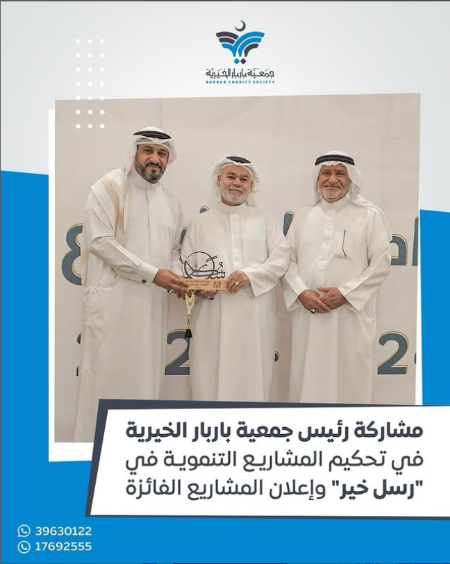 شارك رئيس جمعية باربار المهندس السيد علي سبت في حفل تكريم المشاريع التنموية *رسل خير* وإعلان المشاريع الفائزة وذلك يوم الأربعاء ٢٤سبتمبر٢٠٢٥ في صالة أحمد كانو بمدينة حمد